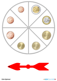 Game spinner with coins from US, UK, EU, Canada and Oz. Now includes new UK coinage designs for Charles III